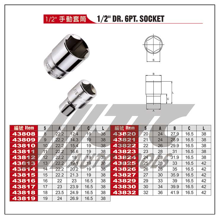 1/2" 手动短六角套筒26mmJTC43829