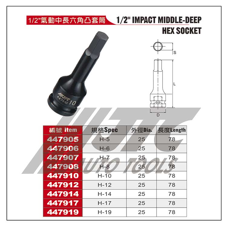1/2"气动中长六角凸套筒JTC447908