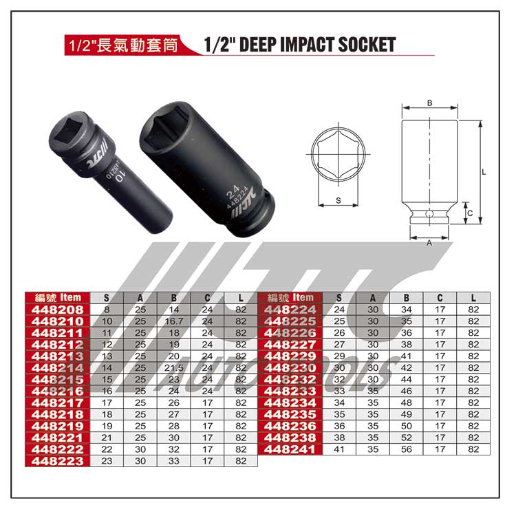 1/2" 6PT长气动套筒38MMJTC448241