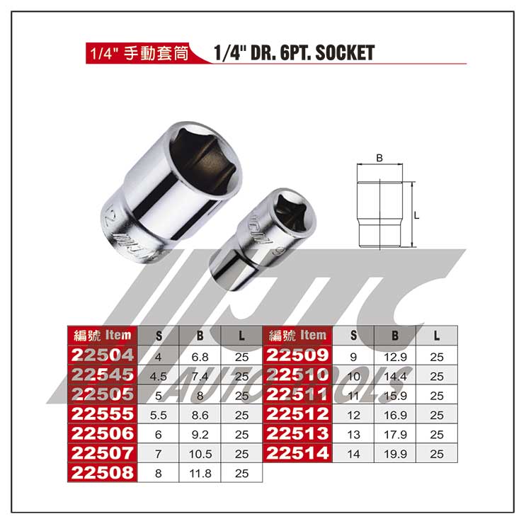 1/4"手动套筒 -6mm 12PTJTC22607