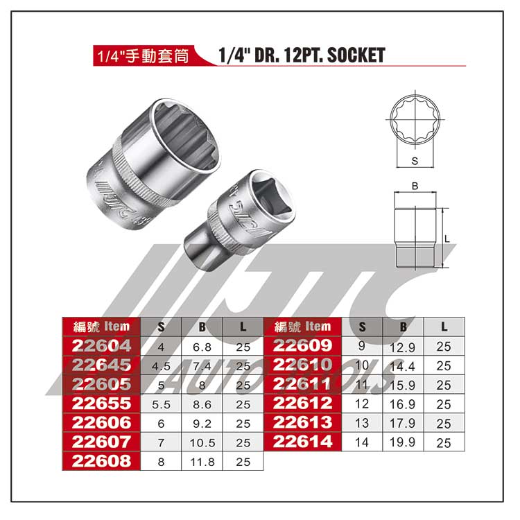 1/4"手动套筒 -12mm 12PTJTC22613