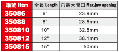 • Non-protruding on the movable jaw end allows a greater ease of use in narrow space.