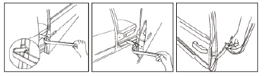 • Simply slide pin end of tool into door latch and close door until tool engages door striker.